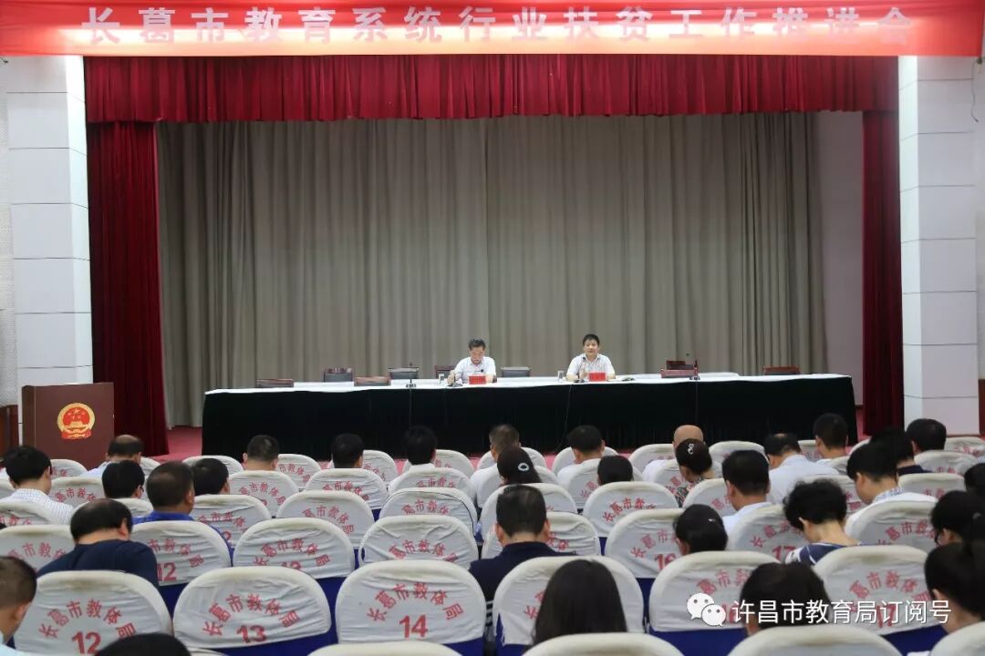 6月27日上午,长葛市教育系统行业扶贫工作推进会议在教体局报告厅召开,教体局领导路绍卿、马贵亭出席会议,各镇办中心学校校长、资助专干,市直各学校、各民办学校校长、资助专干,教体局相关股室负责人参加会议。