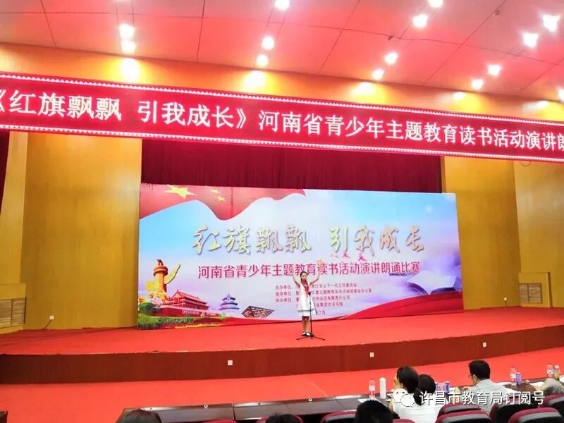 7月14日上午,由河南省教育厅关心下一代工作委员会主办的全省中小学生主题教育读书活动演讲朗诵比赛顺利闭幕。市毓秀路小学五(2)班的卢展羽同学作为许昌市小学组的代表参加了本次比赛,并获得了特等奖的佳绩,展现了新时代许昌学子的风采,为我市争得了荣誉。