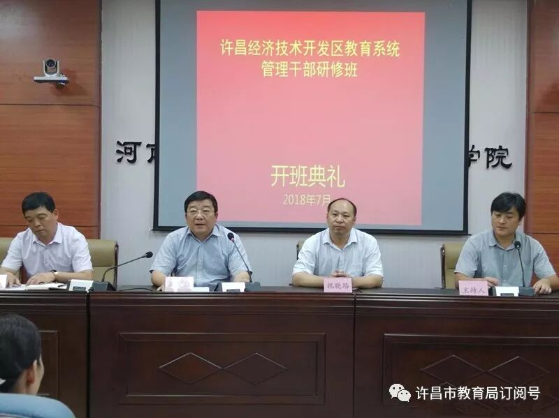 为加强开发区教育系统管理干部素能的提升,推动学校各项工作建设有序开展,7月30日下午,开发区教育系统管理干部素能研修班在河南大学顺利开班。河南大学哲学与公共管理学院副院长祝晓路,开发区法制与社会服务局局长周建红、教育办公室主任李剑钊出席开班仪式并讲话。开发区教育系统中层以上所有管理干部参加了开班仪式。