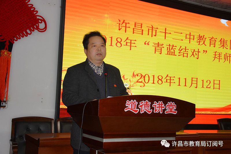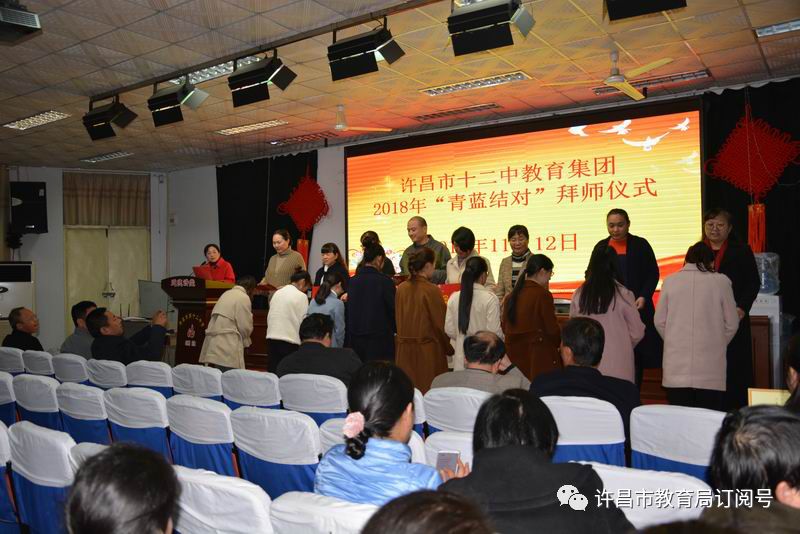 为充分发挥骨干教师的传、帮、带作用,促进新教师快速成长,提高学校师资整体水平,11月12日下午,许昌市十二中在多媒体教室举行了“青蓝结对”拜师仪式。