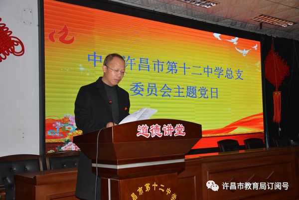 11月12日下午4点,市十二中党总支在多媒体教室举行主题党日活动,会议由该校党总支书记吴占伟主持,全体党员参加了大会。