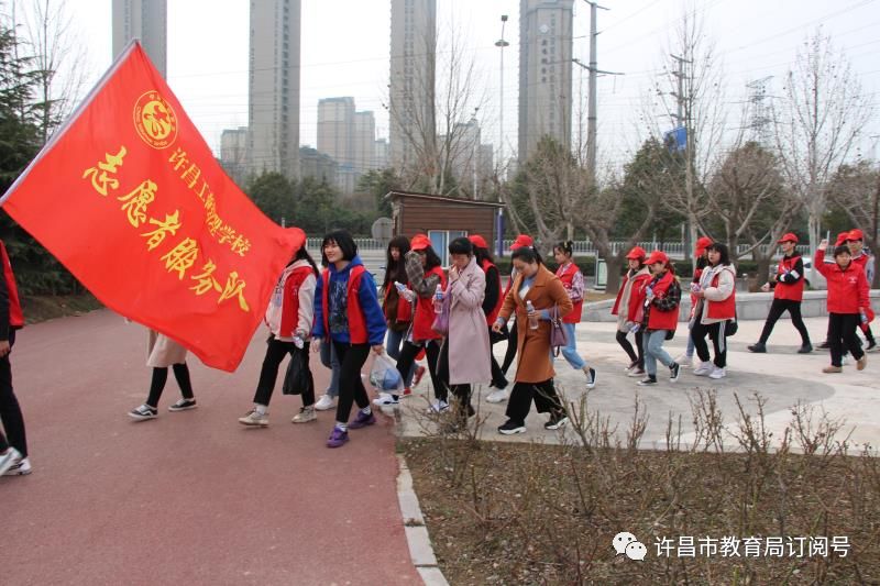 3月4日下午,许昌工商管理学校团委负责老师带领36名学生步行到鹿鸣湖参加爱护水系保洁活动。同学们带上一次性手套,认真捡拾绿化带及水系道路上的垃圾。