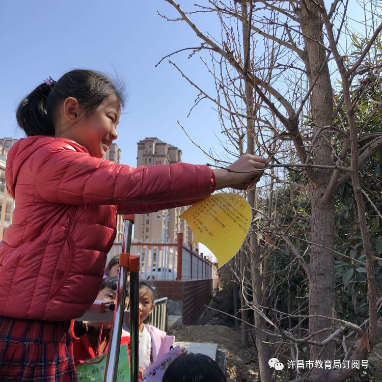 为了培养孩子们植树造林、爱护环境的意识,进一步提高全校师生的环保意识和文明素质,用自己的双手努力营造一个良好的校园环境。3月12日,许昌市毓秀路小学南海街校区以各个班级为单位,围绕爱树、护树、树木知识讲解,组织开展了以“不负春光,携手成长”为主题的植树节树木认领活动。