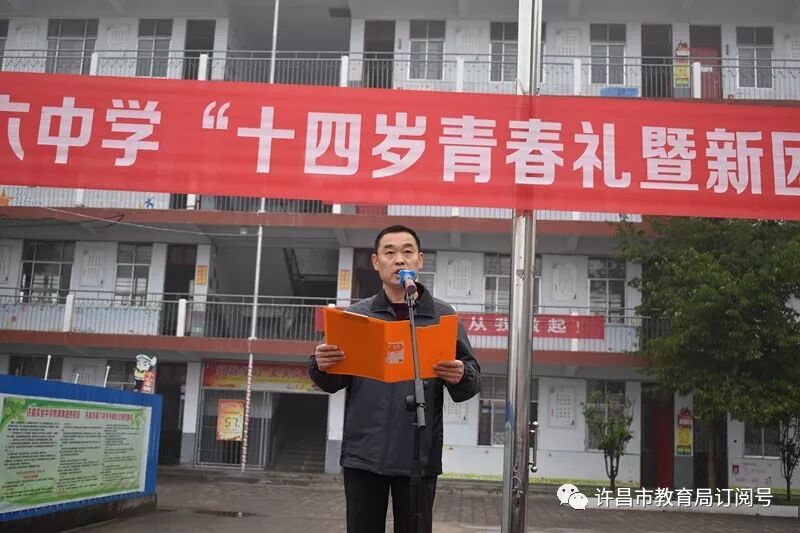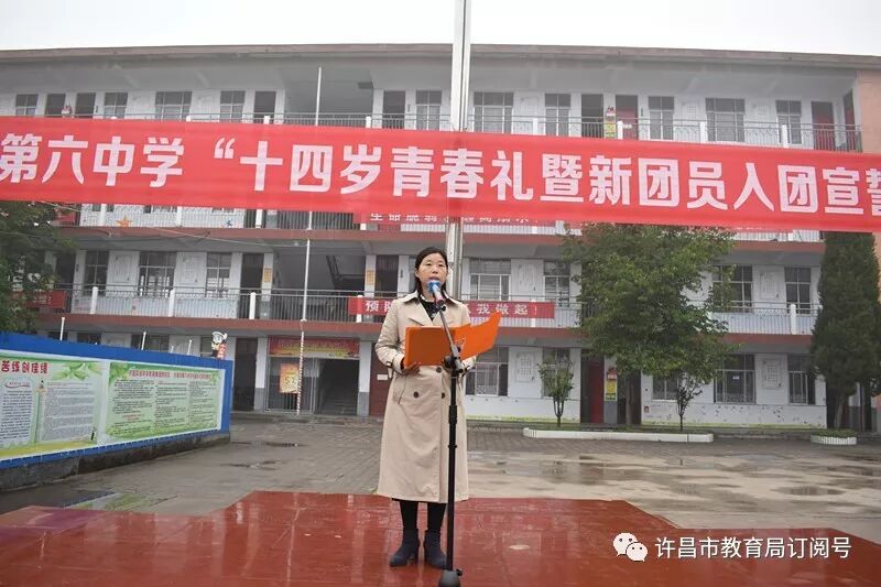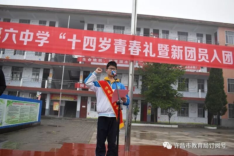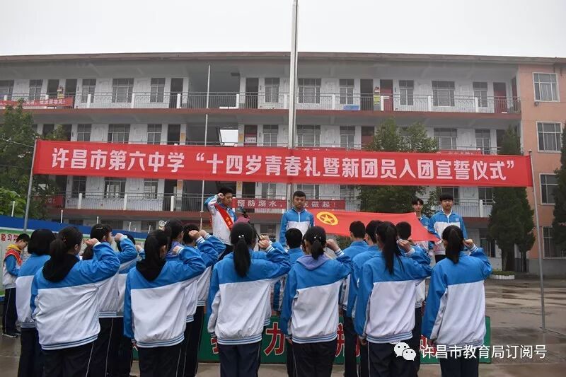 为迎接祖国70岁华诞、建团100周年,为进一步弘扬和践行社会主义核心价值观、培养学生的责任意识、爱国热情和担当精神,4月29日,许昌市第六中学利用早上升旗仪式时间,举行了“十四岁青春礼暨新团员入团宣誓仪式”活动。仪式由该校团委书记张幸丽主持。