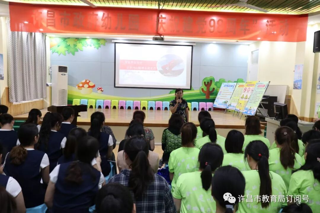 为庆祝建党98周年,构建和谐向上的园所文化,激发教职工的爱国情怀,展现广大教职工积极向上的精神风貌,以实际行动向党的生日献礼。6月6日,许昌市政府幼儿园举行“庆祝建党98周年”活动,该园党支部副书记、园长姚健主持活动,七一社区马静书记带领社区党员同志们参与了庆祝活动。