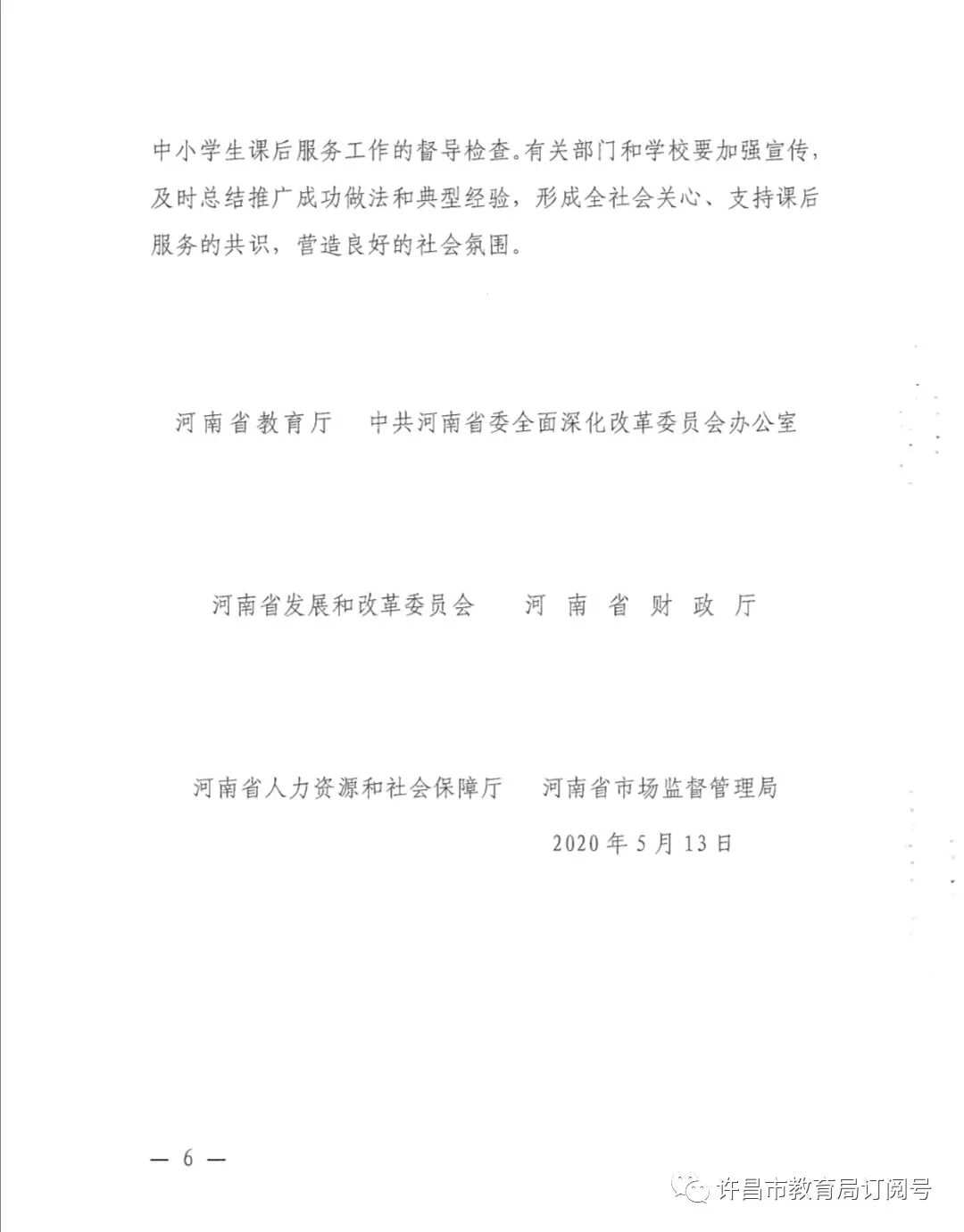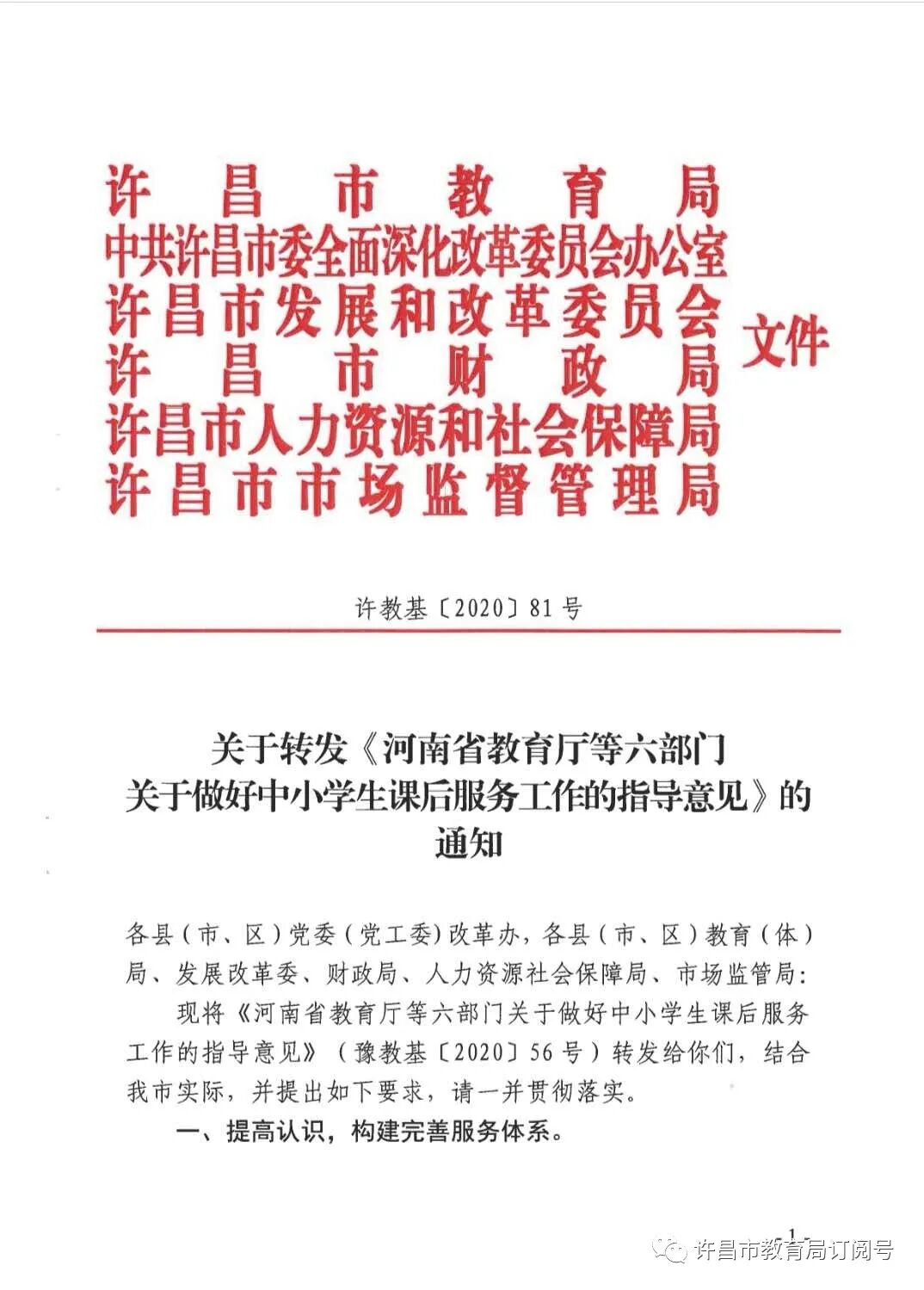 关于转发《河南省教育厅等六部门关于做好中小学生课后服务工作的指导意见》的通知