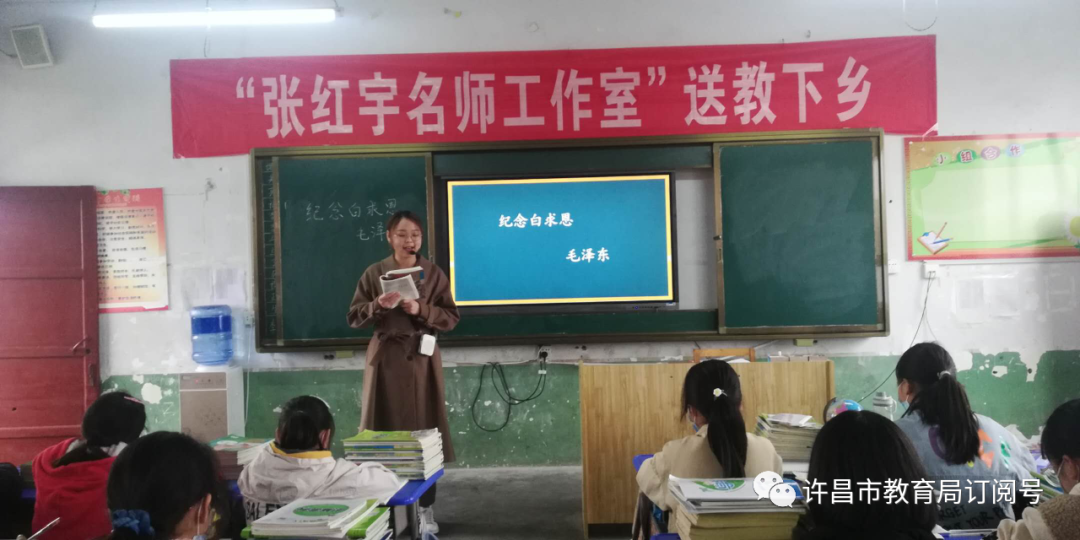 下午,许昌市十二中校长袁惠召、党总支书记吴占伟带领张红宇名师工作室《统编教材视野下的红色经典阅读教学研究》课题组两名语文骨干教师,到长葛市老城镇初级中学开展送教下乡活动。